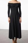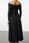 Moda Stil Fitted Asimetrik Yaka Midi Boy A-Kesim Örme Elbise - Her ortama uyum sağlayan kadın elbiseleri, zarafeti ve şıklığı bir araya getirerek tarzınıza sofistike bir dokunuş katıyor.