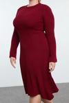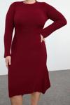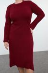 Moda Stil Fitted Bisiklet Yaka Midi Boy Büyük Beden Bordo Fitilli Triko Elbise - Her ortama uyum sağlayan kadın elbiseleri, zarafeti ve şıklığı bir araya getirerek tarzınıza sofistike bir dokunuş katıyor.