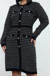Moda Stil Fitted Bisiklet Yaka Mini Boy Büyük Beden Desenli Düğmeli Triko Elbise - Her ortama uyum sağlayan kadın elbiseleri, zarafeti ve şıklığı bir araya getirerek tarzınıza sofistike bir dokunuş katıyor.