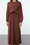 Moda Stil Fitted Bisiklet Yaka Uzun Tesettür Peplum Detaylı Dokuma Elbise - Her ortama uyum sağlayan kadın elbiseleri, zarafeti ve şıklığı bir araya getirerek tarzınıza sofistike bir dokunuş katıyor.