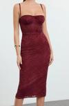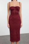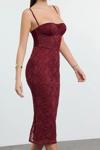 Moda Stil Fitted Kalp Yaka Midi Boy Bordo Örme Astarlı Dantel Elbise - Her ortama uyum sağlayan kadın elbiseleri, zarafeti ve şıklığı bir araya getirerek tarzınıza sofistike bir dokunuş katıyor.