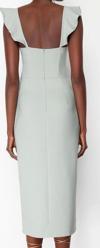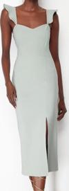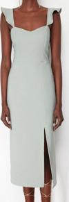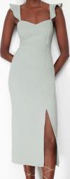 Moda Stil Fitted Kalp Yaka Midi Boy Vücuda Oturan Volanlı Dokuma Elbise - Her ortama uyum sağlayan kadın elbiseleri, zarafeti ve şıklığı bir araya getirerek tarzınıza sofistike bir dokunuş katıyor.