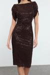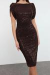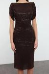 Ersefa Moda Stil Fitted Kayık Yaka Midi Boy Vücuda Oturan Parıltılı Örme Payet Şık Abiye Elbise