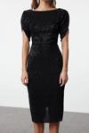 - - Kumaş Tipi:Örme - Kalıp:Fitted - Kol Boyu:Kısa - Kol Tipi:Standart Kol - Desen:Düz - Yaka Tipi:Kayık Yaka - Renk:Siyah - Ürün Detayı:Fiyonklu - Cep:Cepsiz - Astar Durumu:Astarlı - Boy:Midi - Persona:Feminine - Siluet:Bodycone - Ortam:Kokteyl - Dokuma Tipi:Payet - Kemer/Kuşak Durumu:Kemersiz - Sürdürülebilirlik Detayı:Hayır - Materyal Bileşeni:65% Polyester, ,35% Metalize Elyaf - Yıkama Talimatı:T80 - Yaş:Tüm Yaş Grupları -