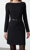 - - Kumaş Tipi:Dokuma - Materyal:Dokuma - Kalıp:Fitted - Kol Boyu:Uzun - Persona:Fashion Forward - Kol Tipi:Standart Kol - Desen:Düz - Yaka Tipi:Kayık Yaka - Renk:Siyah - Ürün Detayı:Kemerli - Cep:Cepsiz - Astar Durumu:Astarsız - Boy:Mini - Siluet:A-line - Ortam:Gündüz / Gece - Dokuma Tipi:Finike - Kemer/Kuşak Durumu:Kemerli - Sürdürülebilirlik Detayı:Hayır - Materyal Bileşeni:88% Polyester, ,12% Lycra Elastan - Yıkama Talimatı:T10 - Yaş:Tüm Yaş Grupları -