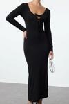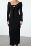 Moda Stil Fitted U Yaka Maxi Boy Vücuda Oturan Göğüsten Bağlama Detaylı Örme Uzun Elbise - Her ortama uyum sağlayan kadın elbiseleri, zarafeti ve şıklığı bir araya getirerek tarzınıza sofistike bir dokunuş katıyor.