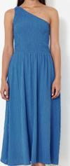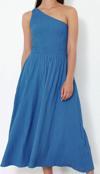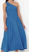 Moda Stil Regular Asimetrik Yaka Midi Boy Belden Açılan Üst Bedeni Gipeli Tek Omuz Dokuma Elbise - Her ortama uyum sağlayan kadın elbiseleri, zarafeti ve şıklığı bir araya getirerek tarzınıza sofistike bir dokunuş katıyor.