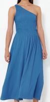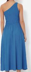 Ersefa Moda Stil Regular Asimetrik Yaka Midi Boy Belden Açılan Üst Bedeni Gipeli Tek Omuz Dokuma Elbise