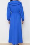 - - Kalıp:Regular - Kumaş Tipi:Dokuma - Materyal:Polyester - Cep:Cepsiz - Desen:Düz - Yaka Tipi:Bebe Yaka - Kol Tipi:Standart Kol - Renk:Mavi - Kol Boyu:Uzun - Astar Durumu:Astarsız - Ortam:Casual/Günlük - Siluet:Skater - Boy:Maxi - Materyal Bileşeni:100% Polyester - Dokuma Tipi:Keten görünümlü - Persona:Fashion Forward - Yıkama Talimatı:T10 - Sürdürülebilirlik Detayı:Hayır - Kemer/Kuşak Durumu:Kemersiz - Yaş:Tüm Yaş Grupları -
