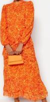 - - Kalıp:Regular - Kumaş Tipi:Dokuma - Materyal:Polyester - Cep:Cepsiz - Desen:Çiçekli - Yaka Tipi:Bisiklet Yaka - Kol Tipi:Standart Kol - Renk:Turuncu - Kol Boyu:Uzun - Astar Durumu:Astarlı - Koleksiyon:Tesettür Giyim - Ortam:Şık / gece - Siluet:Eteği Fırfırlı - Boy:Maxi - Materyal Bileşeni:100% Polyester - Dokuma Tipi:Şifon - Persona:Feminine - Yıkama Talimatı:Type 0 - Sürdürülebilirlik Detayı:Hayır - Kemer/Kuşak Durumu:Kemersiz -