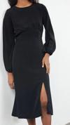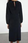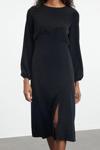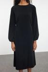 Moda Stil Regular Bisiklet Yaka Midi Boy Belden Açılan Balon Kol Detaylı Dokuma Elbise - Her ortama uyum sağlayan kadın elbiseleri, zarafeti ve şıklığı bir araya getirerek tarzınıza sofistike bir dokunuş katıyor.