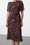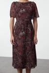 Ersefa Moda Stil Regular Bisiklet Yaka Midi Boy Desenli A Kesim Melek Kol Astarlı Şifon Dokuma Elbise