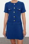 Moda Stil Regular Bisiklet Yaka Mini Boy A Kesim Düğme Detaylı Tüvit Dokuma Elbise - Her ortama uyum sağlayan kadın elbiseleri, zarafeti ve şıklığı bir araya getirerek tarzınıza sofistike bir dokunuş katıyor.