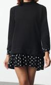 - - Kumaş Tipi:Örme - Materyal:Pamuklu - Kalıp:Regular - Kol Boyu:Uzun - Persona:Fashion Forward - Kol Tipi:Standart Kol - Desen:Puantiyeli - Yaka Tipi:Bisiklet Yaka - Renk:Siyah - Cep:Cepsiz - Astar Durumu:Astarsız - Boy:Mini - Siluet:Eteği Fırfırlı - Ortam:Casual/Günlük - Dokuma Tipi:3 İplik Şardonsuz - Kemer/Kuşak Durumu:Kemersiz - Sürdürülebilirlik Detayı:Hayır - Materyal Bileşeni:70% Pamuk, ,30% Polyester - Yıkama Talimatı:T10 - Yaş:Tüm Yaş Grupları -