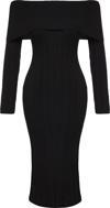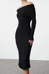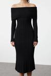 Moda Stil Regular Carmen Yaka Midi Boy Triko Basic Elbise - Her ortama uyum sağlayan kadın elbiseleri, zarafeti ve şıklığı bir araya getirerek tarzınıza sofistike bir dokunuş katıyor.