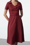 - - Kumaş Tipi:Dokuma - Materyal:Polyester Karışımlı - Kalıp:Regular - Kol Boyu:Kısa - Kol Tipi:Balon Kol - Desen:Düz - Yaka Tipi:Ceket Yaka - Renk:Bordo - Ürün Detayı:Düğmeli - Cep:Cepsiz - Astar Durumu:Astarsız - Boy:Midi - Persona:Office - Siluet:Skater - Ortam:Business - Dokuma Tipi:Finike - Kemer/Kuşak Durumu:Kemerli - Sürdürülebilirlik Detayı:Hayır - Materyal Bileşeni:88% Polyester, ,12% Elastan - Yıkama Talimatı:Type 0 - Yaş:Tüm Yaş Grupları -