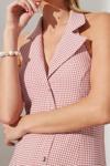 - - Kumaş Tipi:Dokuma - Materyal:Polyester - Kalıp:Regular - Kol Tipi:Standart Kol - Desen:Ekose / Kareli - Yaka Tipi:Ceket Yaka - Renk:Pembe - Kapama Şekli:Düğmeli - Kol Boyu:Kolsuz - Cep:Cepsiz - Astar Durumu:Astarsız - Boy:Midi - Persona:Smart - Siluet:Bodycone - Ortam:Gündüz / Gece - Dokuma Tipi:İpliği boyalı - Ek Özellik:Ek Özellik Mevcut Değil - Kemer/Kuşak Durumu:Kemersiz - Sürdürülebilirlik Detayı:Hayır - Materyal Bileşeni:55% Viskoz, ,45% Polyester - Yıkama Talimatı:Type 0 - Paket İçeriği:Tekli - Yaş:Tüm Yaş Grupları -