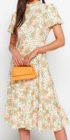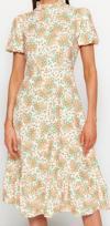 - - Kumaş Tipi:Dokuma - Materyal:Polyester - Desen:Çiçekli - Kalıp:Regular - Kol Boyu:Kısa - Kol Tipi:Balon Kol - Yaka Tipi:Dik Yaka - Renk:Ekru - Ürün Detayı:Fırfırlı - Cep:Cepsiz - Astar Durumu:Astarlı - Boy:Midi - Persona:Feminine - Siluet:A-line - Ortam:Gündüz / Gece - Dokuma Tipi:Moss Krep - Kemer/Kuşak Durumu:Kemersiz - Sürdürülebilirlik Detayı:Hayır - Materyal Bileşeni:100% Polyester - Yıkama Talimatı:Type 0 - Yaş:Tüm Yaş Grupları -