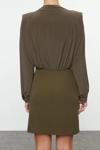 Moda Stil Regular Dik Yaka Mini Boy Düz Vatkalı Dokuma Elbise - Her ortama uyum sağlayan kadın elbiseleri, zarafeti ve şıklığı bir araya getirerek tarzınıza sofistike bir dokunuş katıyor.