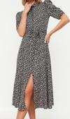 Moda Stil Regular Gömlek Yaka Midi Boy Çiçek Desenli Kuşaklı Dokuma Viskon Gömlek Elbise - Her ortama uyum sağlayan kadın elbiseleri, zarafeti ve şıklığı bir araya getirerek tarzınıza sofistike bir dokunuş katıyor.
