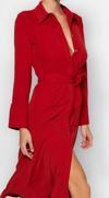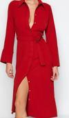 - - Kumaş Tipi:Dokuma - Materyal:Dokuma - Kalıp:Regular - Kol Boyu:Uzun - Kol Tipi:Standart Kol - Desen:Düz - Yaka Tipi:Gömlek Yaka - Renk:Kırmızı - Kapama Şekli:Düğmeli - Ürün Detayı:Düğmeli - Cep:Cepsiz - Astar Durumu:Astarsız - Boy:Midi - Persona:Smart - Siluet:Gömlek Elbise - Ortam:Gündüz / Gece - Dokuma Tipi:Aerobin - Ek Özellik:Ek Özellik Mevcut Değil - Kemer/Kuşak Durumu:Kuşaklı - Sürdürülebilirlik Detayı:Hayır - Materyal Bileşeni:57% Elastommultiester, ,43% Polyester - Yıkama Talimatı:T10 - Yaş:Tüm Yaş Grupları -
