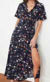 Moda Stil Regular Gömlek Yaka Midi Boy Kuşaklı Yırtmaçlı Çiçek Desenli Dokuma Gömlek Elbise - Her ortama uyum sağlayan kadın elbiseleri, zarafeti ve şıklığı bir araya getirerek tarzınıza sofistike bir dokunuş katıyor.