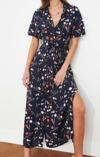 - - Kumaş Tipi:Dokuma - Desen:Çiçekli - Kalıp:Regular - Kol Boyu:Kısa - Persona:Cool & Comfort - Kol Tipi:Standart Kol - Yaka Tipi:Gömlek Yaka - Renk:Lacivert - Ürün Detayı:Kuşaklı - Astar Durumu:Astarsız - Boy:Midi - Siluet:Gömlek Elbise - Ortam:Casual/Günlük - Dokuma Tipi:Shally - Kemer/Kuşak Durumu:Kuşaklı - Sürdürülebilirlik Detayı:Hayır - Materyal Bileşeni:100% Viskoz - Yıkama Talimatı:Type 0 -