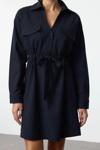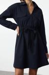 Moda Stil Regular Gömlek Yaka Mini Boy Belden Açılan Tünel Detaylı Pamuklu Dokuma Elbise - Her ortama uyum sağlayan kadın elbiseleri, zarafeti ve şıklığı bir araya getirerek tarzınıza sofistike bir dokunuş katıyor.
