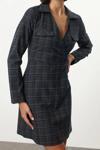 Moda Stil Regular Gömlek Yaka Mini Boy Ekose A Kesim Kruvaze Yaka Kışlık Dokuma Elbise - Her ortama uyum sağlayan kadın elbiseleri, zarafeti ve şıklığı bir araya getirerek tarzınıza sofistike bir dokunuş katıyor.