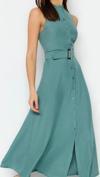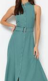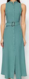 Moda Stil Regular Halter Yaka Maxi Boy Kemerli Dokuma Gömlek Elbise - Her ortama uyum sağlayan kadın elbiseleri, zarafeti ve şıklığı bir araya getirerek tarzınıza sofistike bir dokunuş katıyor.