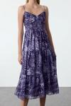Moda Stil Regular Kalp Yaka Midi Boy Desenli Skater Dokuma Elbise - Her ortama uyum sağlayan kadın elbiseleri, zarafeti ve şıklığı bir araya getirerek tarzınıza sofistike bir dokunuş katıyor.