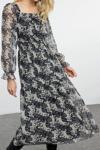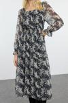 Ersefa Moda Stil Regular Kare Yaka Maxi Boy Çiçek Desenli Skater Belden Açılan Dokuma Şifon Astarlı Elbise