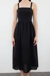 - - Kumaş Tipi:Dokuma - Materyal:%100 Pamuk - Kalıp:Regular - Kol Boyu:Askılı - Persona:Cool & Comfort - Kol Tipi:Standart Kol - Desen:Düz - Yaka Tipi:Kare Yaka - Renk:Siyah - Ürün Detayı:Fiyonklu - Cep:Cepsiz - Astar Durumu:Astarsız - Boy:Midi - Siluet:Skater - Ortam:Casual/Günlük - Dokuma Tipi:Vual - Kemer/Kuşak Durumu:Kemersiz - Sürdürülebilirlik Detayı:Hayır - Materyal Bileşeni:100% Pamuk - Yıkama Talimatı:T01 - Yaş:Tüm Yaş Grupları -