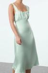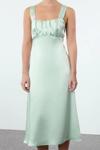 Moda Stil Regular Kare Yaka Midi Boy Göğüs Detaylı Saten Askılı Dokuma Elbise - Her ortama uyum sağlayan kadın elbiseleri, zarafeti ve şıklığı bir araya getirerek tarzınıza sofistike bir dokunuş katıyor.