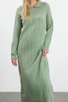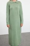 Moda Stil Regular Polo Yaka Maxi Boy Tesettür Balık Sırtı Desenli Triko Elbise - Her ortama uyum sağlayan kadın elbiseleri, zarafeti ve şıklığı bir araya getirerek tarzınıza sofistike bir dokunuş katıyor.