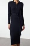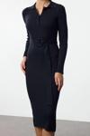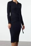 Moda Stil Regular Polo Yaka Midi Boy Kuşaklı Triko Elbise - Her ortama uyum sağlayan kadın elbiseleri, zarafeti ve şıklığı bir araya getirerek tarzınıza sofistike bir dokunuş katıyor.