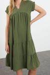 - - Kumaş Tipi:Dokuma - Materyal:Polyester - Kol Tipi:Düşük Kol - Kalıp:Regular - Kol Boyu:Kısa - Persona:Cool & Comfort - Desen:Düz - Yaka Tipi:V Yaka - Renk:Haki - Cep:Cepsiz - Astar Durumu:Astarsız - Boy:Midi - Siluet:Shift - Ortam:Gündüz / Gece - Dokuma Tipi:Aerobin - Kemer/Kuşak Durumu:Kemersiz - Sürdürülebilirlik Detayı:Hayır - Materyal Bileşeni:100% Polyester - Yıkama Talimatı:T10 - Yaş:Tüm Yaş Grupları -