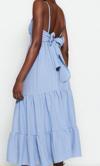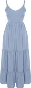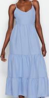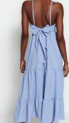 Moda Stil Regular V Yaka Midi Boy Eteği Volanlı Sırt Bağlama Detaylı Askılı Dokuma Elbise - Her ortama uyum sağlayan kadın elbiseleri, zarafeti ve şıklığı bir araya getirerek tarzınıza sofistike bir dokunuş katıyor.