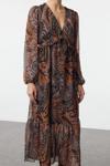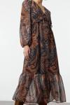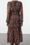 Moda Stil Regular V Yaka Midi Boy Fırfırlı Astarlı Şifon Dokuma Elbise - Her ortama uyum sağlayan kadın elbiseleri, zarafeti ve şıklığı bir araya getirerek tarzınıza sofistike bir dokunuş katıyor.