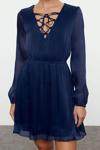 - - Kumaş Tipi:Dokuma - Materyal:Polyester - Kalıp:Regular - Kol Boyu:Uzun - Persona:Fashion Forward - Kol Tipi:Standart Kol - Desen:Düz - Yaka Tipi:V Yaka - Renk:Lacivert - Cep:Cepsiz - Astar Durumu:Astarlı - Boy:Mini - Siluet:Skater - Ortam:Kokteyl - Dokuma Tipi:Şifon - Kemer/Kuşak Durumu:Kemersiz - Sürdürülebilirlik Detayı:Hayır - Materyal Bileşeni:100% Polyester - Yıkama Talimatı:T10 - Yaş:Tüm Yaş Grupları -