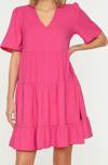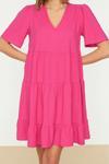 - - Kumaş Tipi:Dokuma - Materyal:Polyester - Kalıp:Regular - Kol Boyu:Kısa - Persona:Cool & Comfort - Kol Tipi:Standart Kol - Desen:Düz - Yaka Tipi:V Yaka - Renk:Pembe - Astar Durumu:Astarsız - Boy:Mini - Siluet:Shift - Ortam:Casual/Günlük - Dokuma Tipi:Aerobin - Kemer/Kuşak Durumu:Kemersiz - Sürdürülebilirlik Detayı:Hayır - Materyal Bileşeni:100% Polyester - Yıkama Talimatı:T10 -