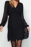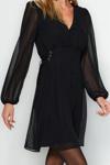 Moda Stil Regular V Yaka Mini Boy Kuşgözü Detaylı Düğmeli Astarlı Şifon Dokuma Elbise - Her ortama uyum sağlayan kadın elbiseleri, zarafeti ve şıklığı bir araya getirerek tarzınıza sofistike bir dokunuş katıyor.