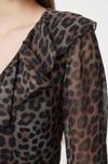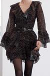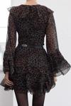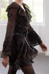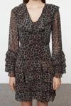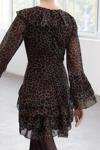 Moda Stil Regular V Yaka Mini Boy Limited Edition Eteği Volanlı Leoparlı Şifon Dokuma Elbise - Her ortama uyum sağlayan kadın elbiseleri, zarafeti ve şıklığı bir araya getirerek tarzınıza sofistike bir dokunuş katıyor.