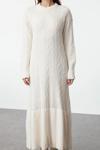 Ersefa Moda Stil Relaxed Bisiklet Yaka Maxi Boy Tesettür Saç Örgü Desenli Eteği Volanlı Triko Elbise