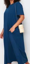 Moda Stil Relaxed Bisiklet Yaka Midi Boy Büyük Beden Örme T-shirt Elbise - Her ortama uyum sağlayan kadın elbiseleri, zarafeti ve şıklığı bir araya getirerek tarzınıza sofistike bir dokunuş katıyor.