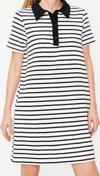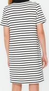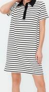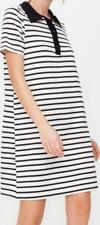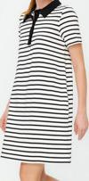 Moda Stil Relaxed Düğmeli Yaka Mini Boy Beyaz Çizgili Polo Yaka A Kesim Çan Form Örme Elbise - Her ortama uyum sağlayan kadın elbiseleri, zarafeti ve şıklığı bir araya getirerek tarzınıza sofistike bir dokunuş katıyor.