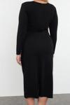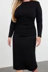 Ersefa Moda Stil Slim Bisiklet Yaka Maxi Boy Büyük Beden Büzgü Detaylı Shift Örme Büyük Beden Elbise