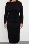 Moda Stil Slim Bisiklet Yaka Maxi Boy Büyük Beden Büzgü Detaylı Shift Örme Büyük Beden Elbise - Her ortama uyum sağlayan kadın elbiseleri, zarafeti ve şıklığı bir araya getirerek tarzınıza sofistike bir dokunuş katıyor.