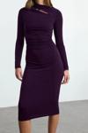 Moda Stil Slim Dik Yaka Midi Boy Cut Out Detaylı Fitted Vücuda Oturan Esnek Örme Elbise - Her ortama uyum sağlayan kadın elbiseleri, zarafeti ve şıklığı bir araya getirerek tarzınıza sofistike bir dokunuş katıyor.