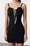 Ersefa Moda Stil Slim Havuz Yaka Mini Boy Renk Bloklu Fiyonk Detaylı Bodycone Vücuda Oturan Örme Elbise